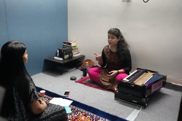 Delve into ragas and talas with expert guidance. Improve vocal techniques, breath control, and performance skills in Hindustani classical music.